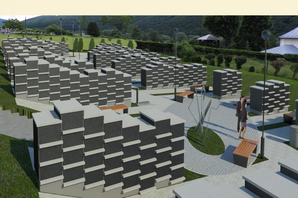 Ideový návrh rieši urnový háj umiestnený vedľa Domu smútku a obecného cintorína. Urnový háj je riešený ako park s centrálnou